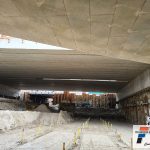 De bekisting van de landhoofden en de 1e (fiets)onderdoorgang is verwijderd en het ontgraven van het zand is begonnen. Hierna zal alles vlak gemaakt worden.